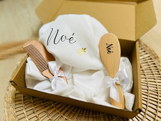 Boite peigne et brosse à cheveux bébé personnalisés